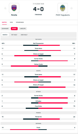 Memasuki babak kedua Persita semakin menunjukkan dominasinya, Jumat (17/10/2025). Hingga menit ke-70, Persita berhasil memperlebar keunggulan menjadi 2-0 melalui gol yang dicetak oleh Rayco Rodriguez.