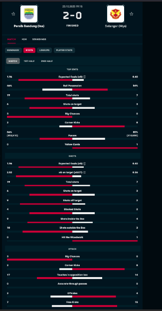 Sebaliknya, kekalahan ini makin menenggelamkan Selangor FC di dasar klasemen. Tim asal Malaysia tersebut belum mengumpulkan satu poin pun dari tiga laga yang sudah mereka jalani.